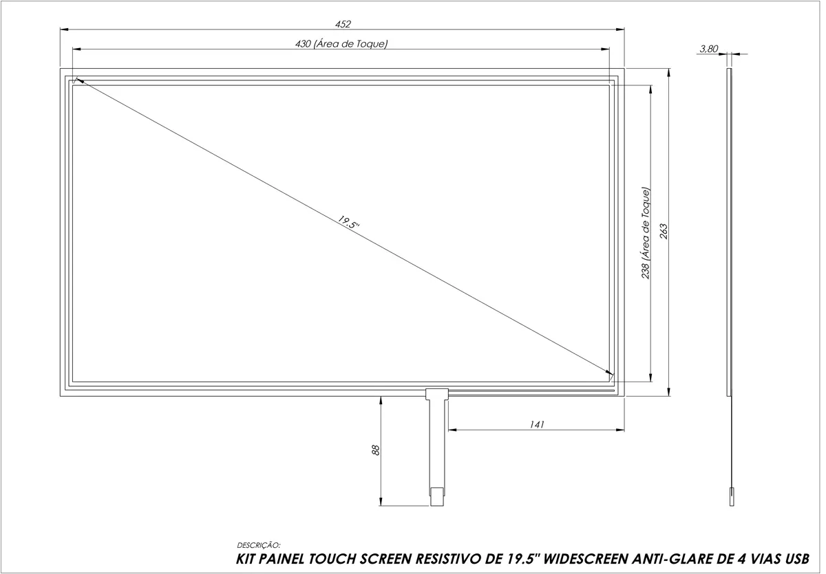 Espessura do componente touch: 3.80 mm de espessura.