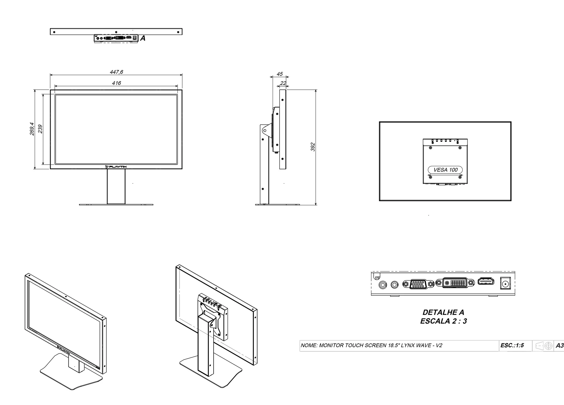 O Monitor Touch Screen Capacitivo Expandido de 18.5” foi projetado com objetivo de proporcionar rapidez, agilidade, qualidade e segurança. Fabricado em aço, com acabamento em pintura eletrostática na cor preta acetinada, possui furação padrão VESA que permite a adaptação em suportes disponíveis no mercado, assim como os de paredes. Ideal para automação industrial, comercial e residencial devido a sua robustez.