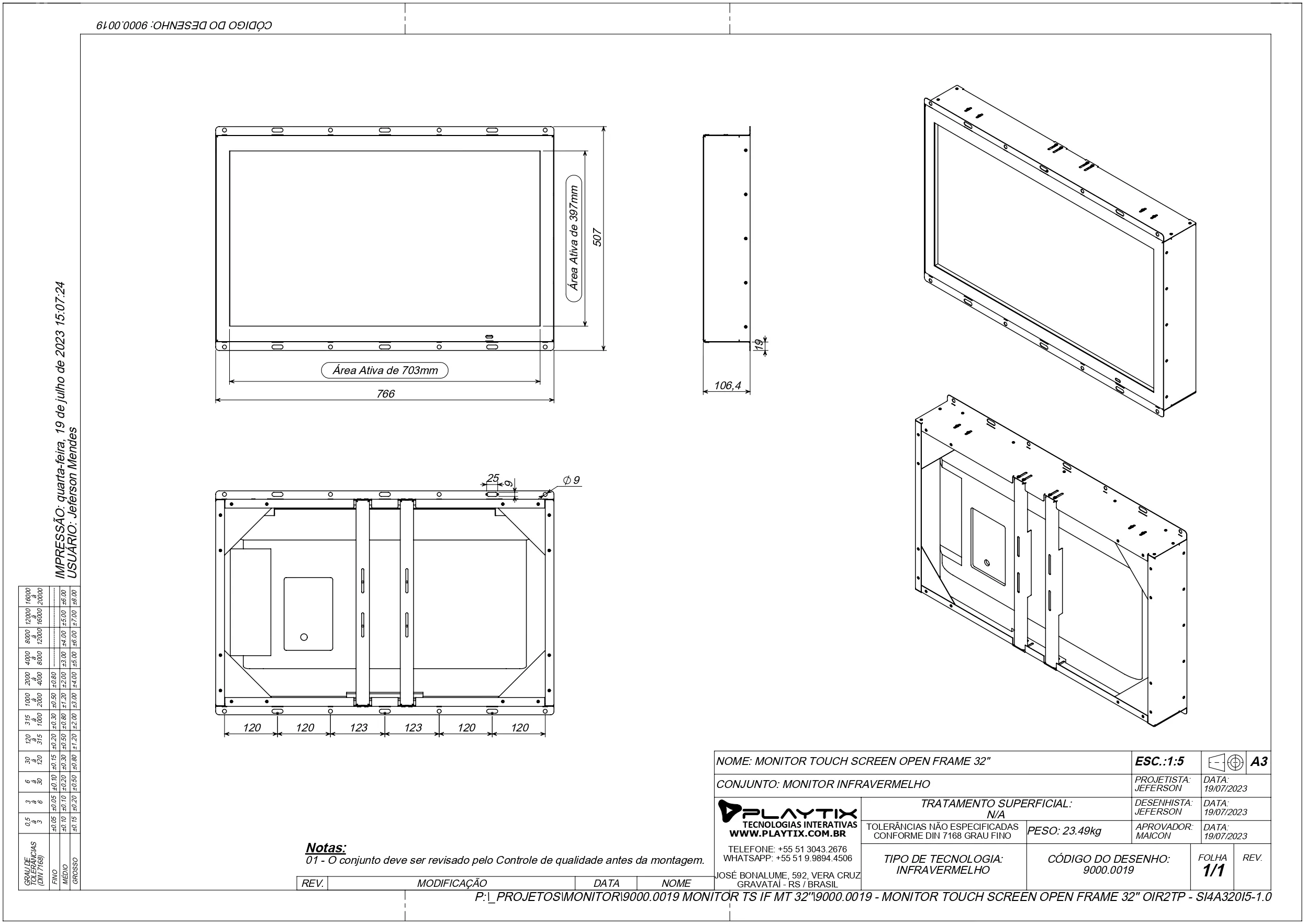 Área táctil e visível: 703 x 397 mm