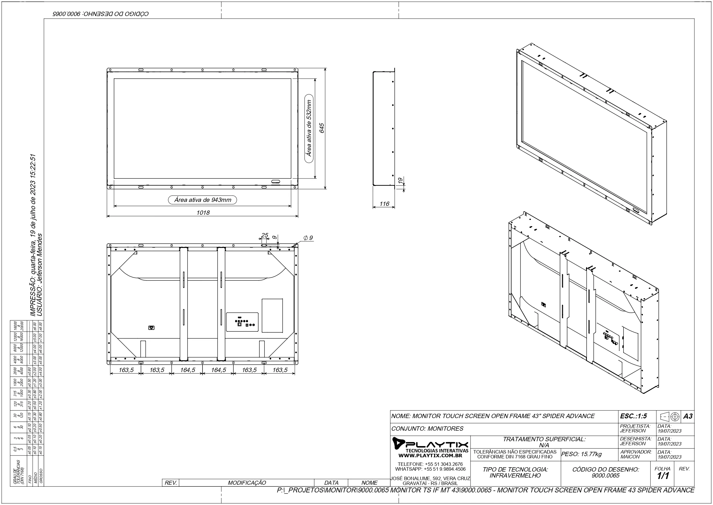 Monitor Open Frame Touch Screen Infravermelho 43″ – Spider Advance