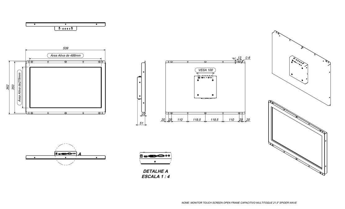 Monitor Open Frame Touch Screen Capacitivo 21.5″ Full Hd Multitoque – Spider Wave