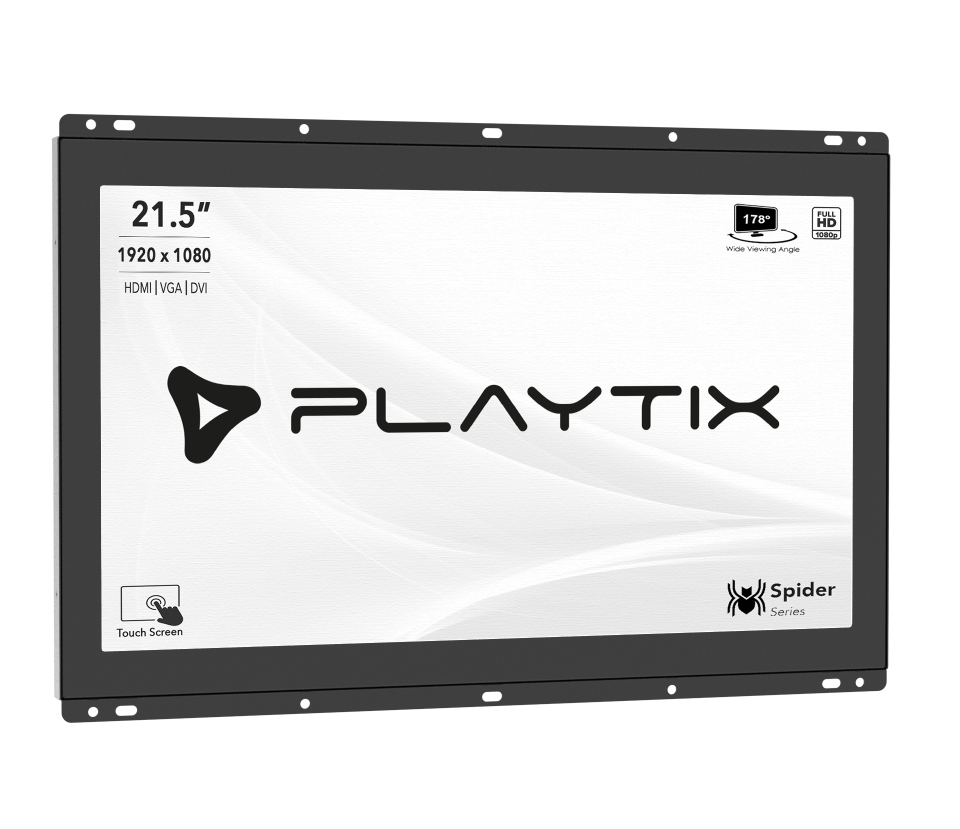 A Playtix traz ao mercado, o Monitor Open Frame Capacitivo de 21.5″ Full HD, ideal para uso em ambientes diversos. A presença de oblongos em seu perímetro possibilita uma fácil fixação sendo rápida e segura em paredes, totens, painéis, entre outros. Possui confiabilidade, durabilidade e tempo de vida útil. Resistentes à ambientes insalubres, ideais para utilização na área fabril, cozinhas de restaurantes assim como no comércio e residências.