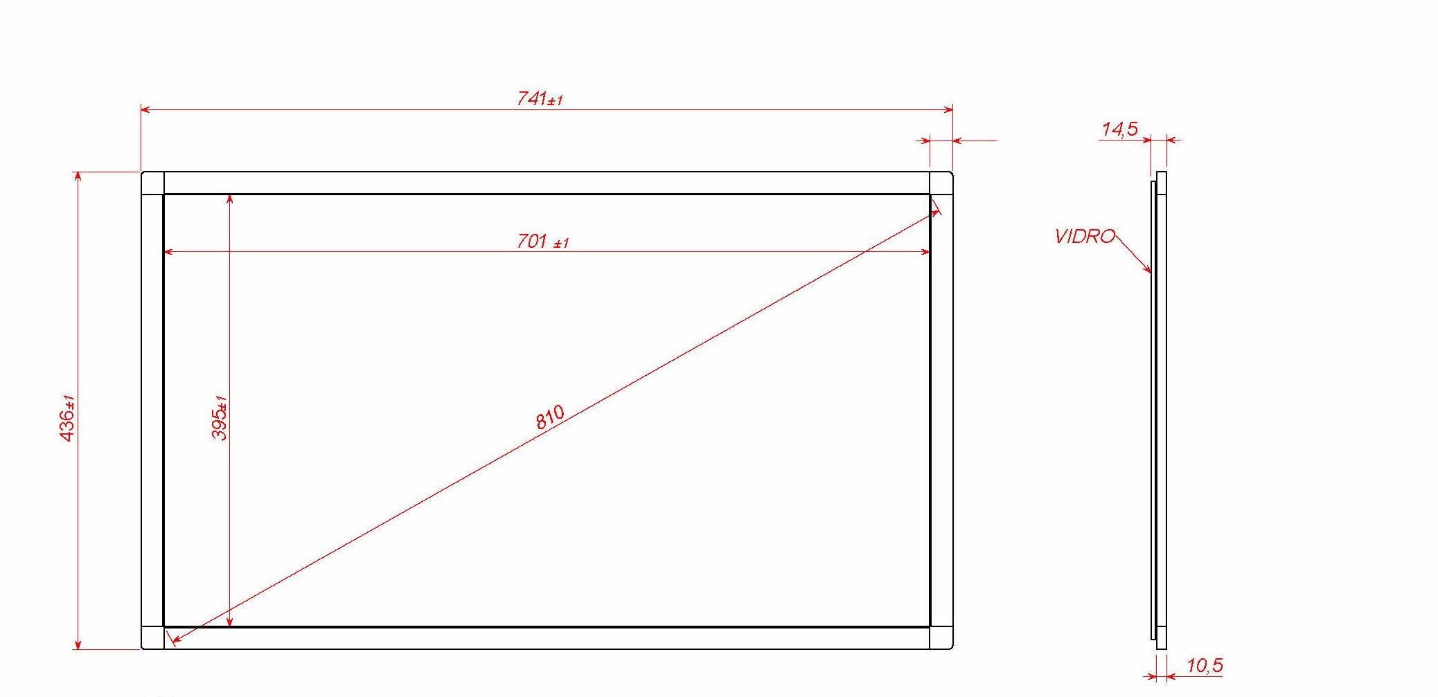 Moldura fabricada em alumínio com tecnologia infravermelha multitouch desenvolvida para transformar monitores comuns em monitores sensíveis ao toque, nesse modelo não recomendamos a utilização de vidro pois a fixação não suportaria o peso do conjunto. O produto é enviado desmontado, basta seguir as instruções do manual para fazer a montagem e instalação, sua interface de conexão é USB Plug and Play.
